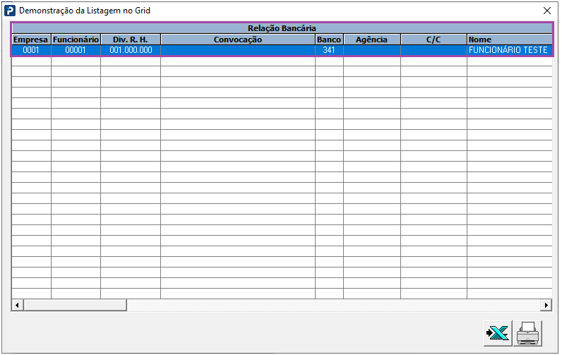 3 - Será demonstrada a Relação Bancária com todos os Funcionários vinculados ao Banco e Agência selecionados.