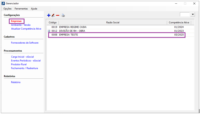 1- Acesse: Parâmetros Gerais > SPED eSocial > Gerenciador