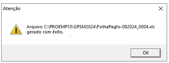 3- É aberta uma janela de confirmação, informando que o arquivo foi gerado corretamente e informando o local onde o arquivo foi salvo.