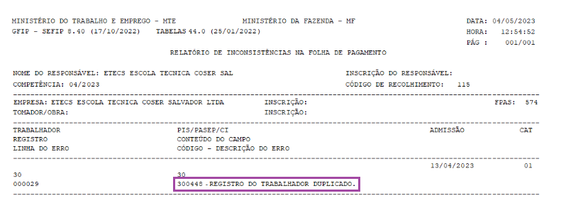 Observação: A SEFIP orienta efetuar o registro do mesmo funcionário com datas diferentes, por exemplo: