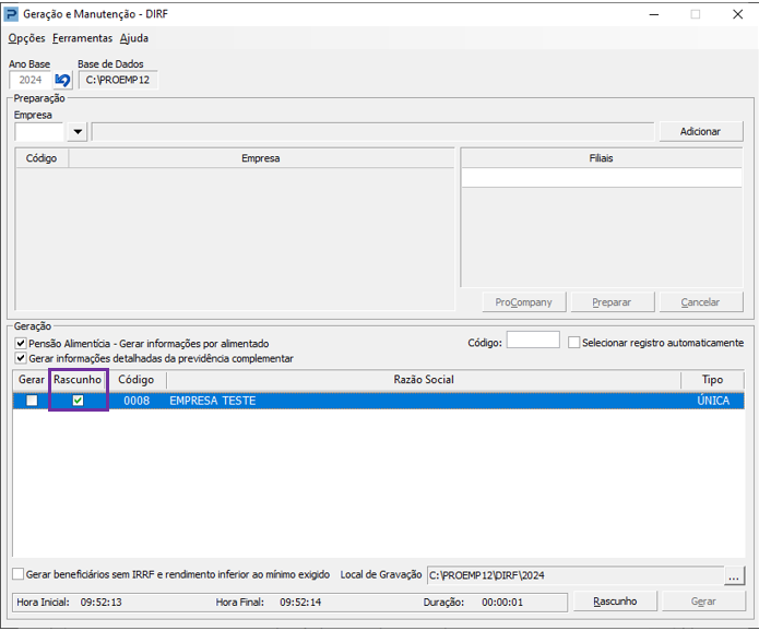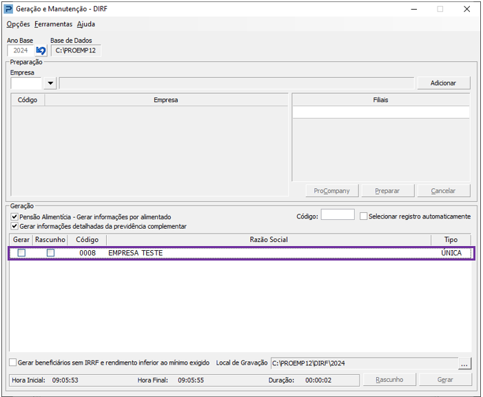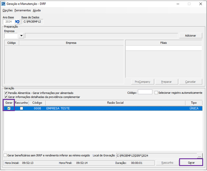Por meio desta rotina é efetuada a preparação dos arquivos, manutenção dos dados e geração do arquivo texto para posterior validação no programa da Receita Federal.