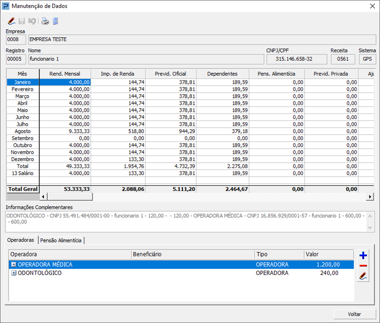 São demonstrados todos os funcionários, sócios e autônomos com movimentação para a DIRF.