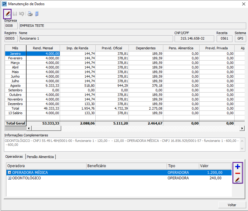 Para realizar manutenção nos dados dê um duplo clique no funcionário e clique no botão Alterar Registro.