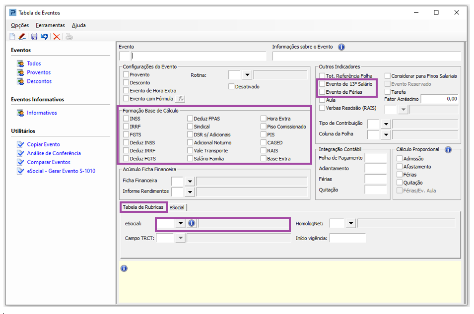 1- Acesse: Social > Folha de Pagamento > Tabelas > Tabela de Eventos
