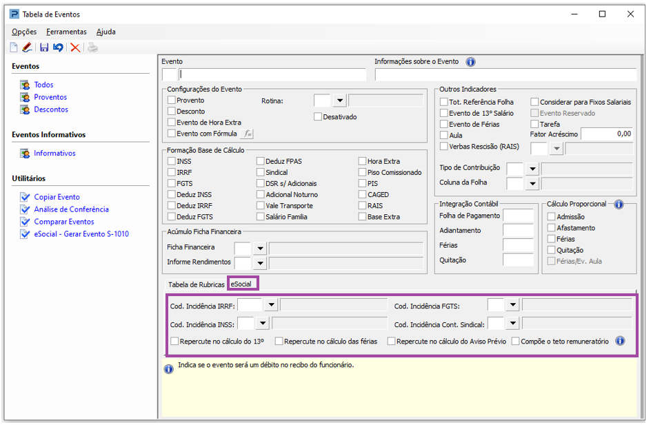 Na Aba eSocial, verificar as incidências e repercussões: