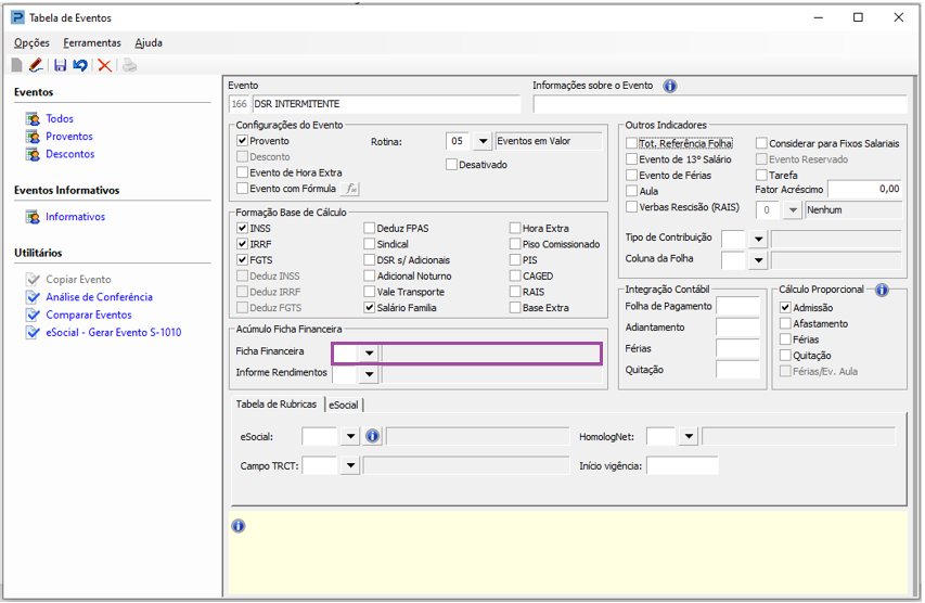 2- Consulte o Evento de DSR utilizado para Funcionários Intermitentes