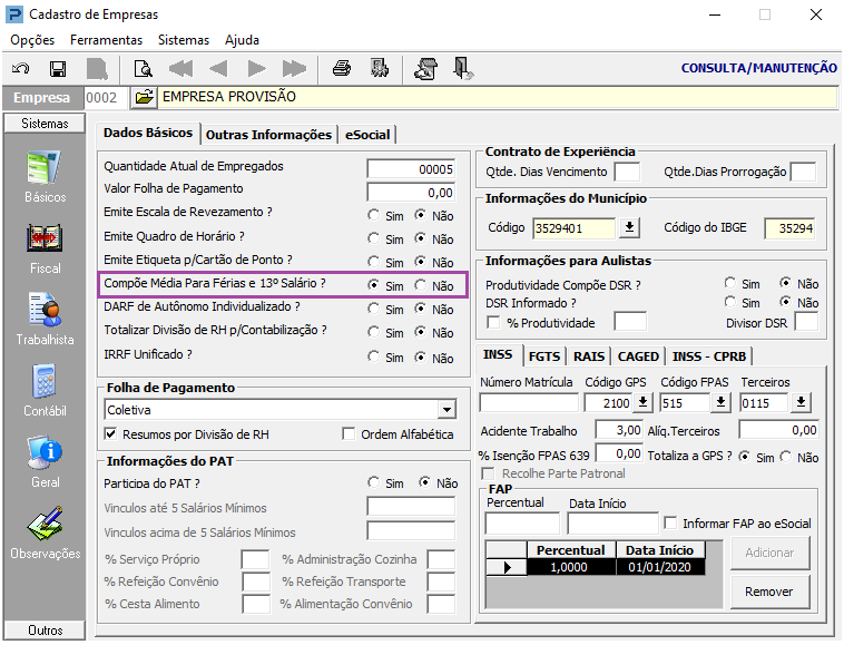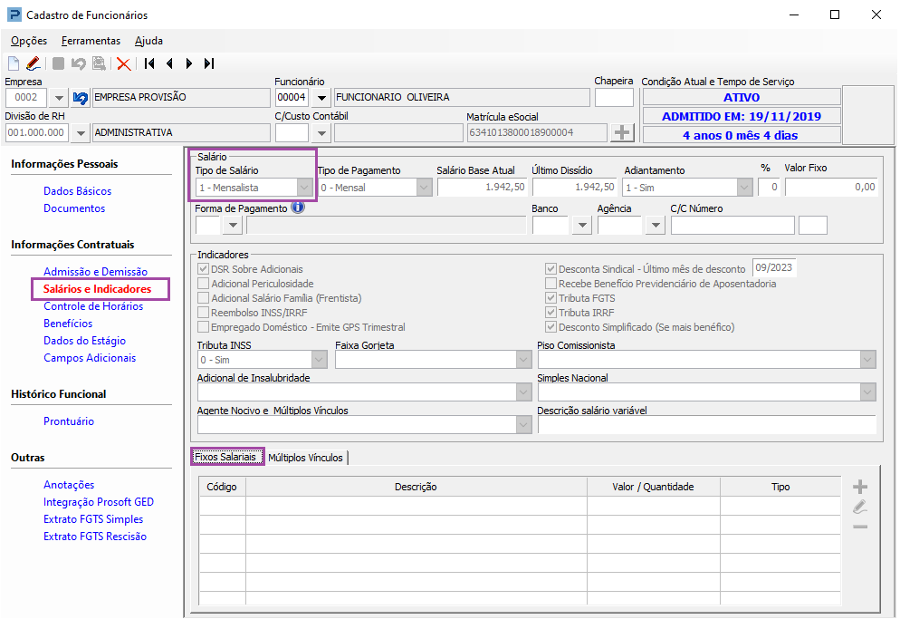 2- O cadastro de funcionários é o responsável por grande parte das informações utilizadas para  o  processamento  das provisões,  é  através  dele  que  inserimos os indicadores e parametrizações para cálculos. Portanto é de suma importância a digitação correta das informações para o perfeito funcionamento das rotinas.
