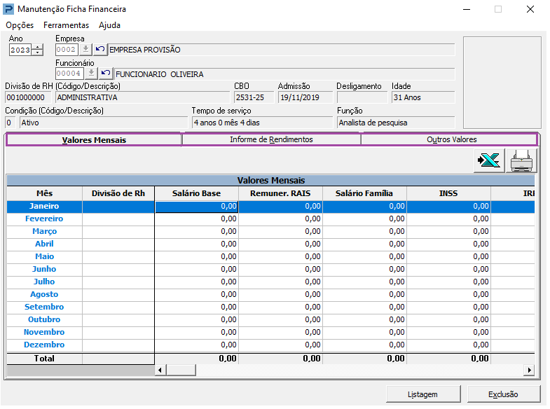 1- Acesse Social > Folha de Pagamento > Manutenção de Arquivos Funcionais > Manutenção Ficha Financeira