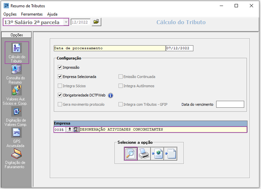 8- Após a digitação do Faturamento acumulado, acesse a Aba Cálculo do Resumo e realize o processamento.