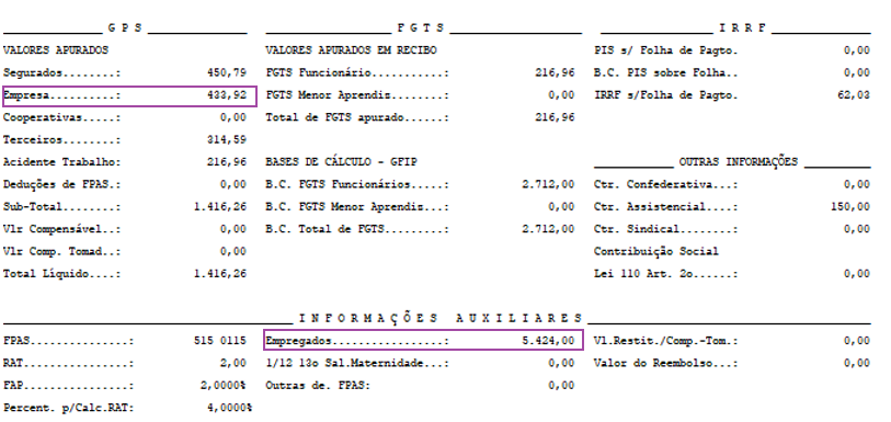 Parte Empresa = Total de Empregados * 20% * Fator de Redução