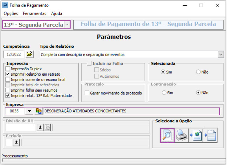 2- Processe os Recibos de 13º Salário Segunda Parcela ou Parcela Única.