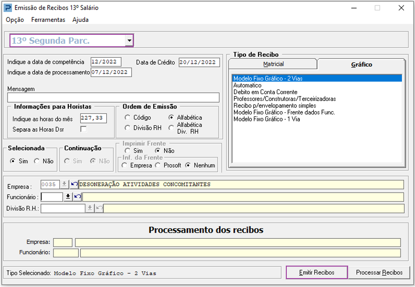 Emissão de Recibos 13º Salário
