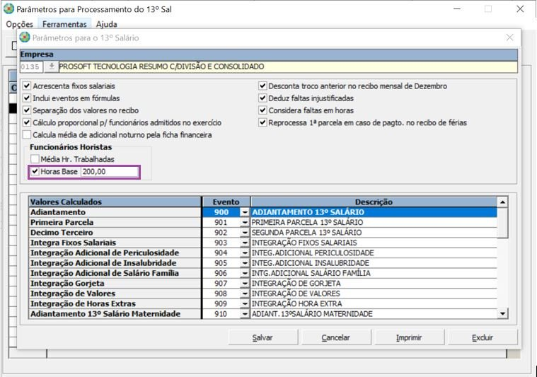 Para funcionários horistas, no cálculo do 13º salário será observado os Parâmetros do 13º Salário para identificar se o cálculo será sobre as horas base mês ou média de horas: