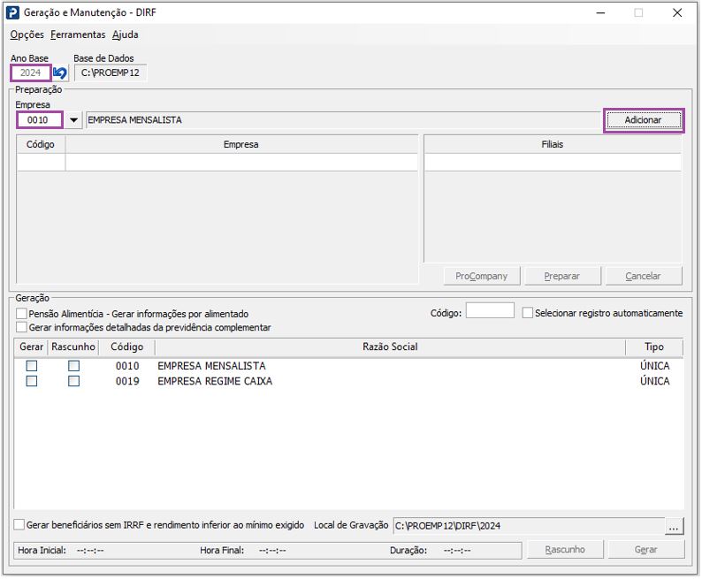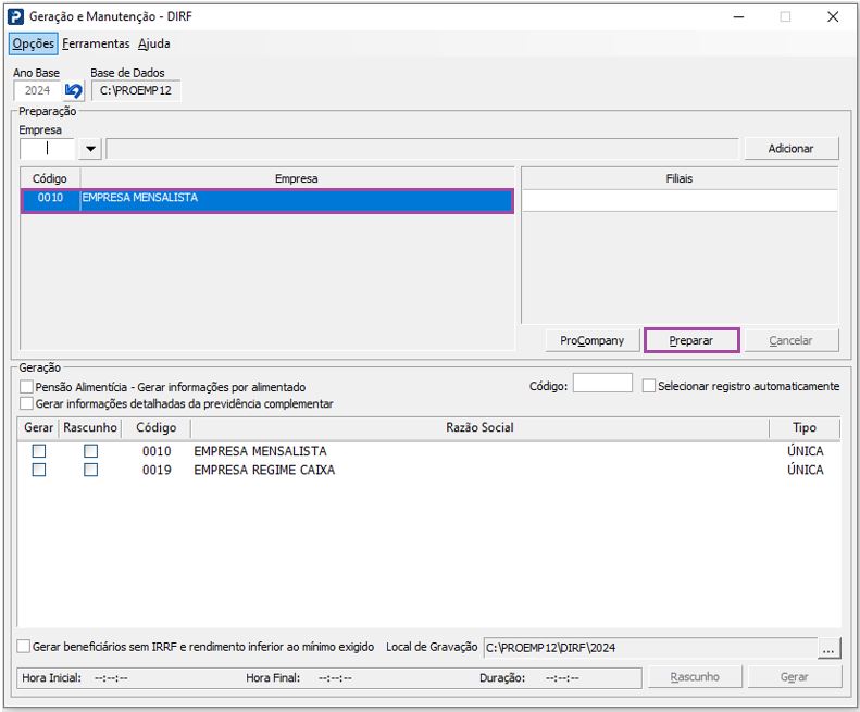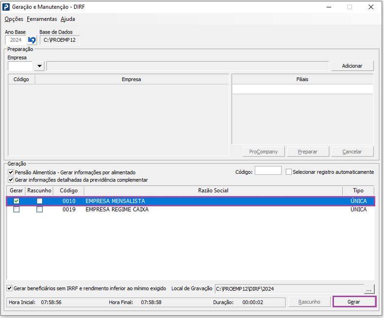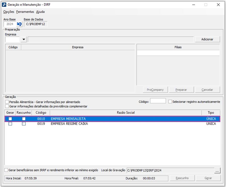 6- A Empresa será apresentada na grade inferior da Rotina Geração e Manutenção - DIRF