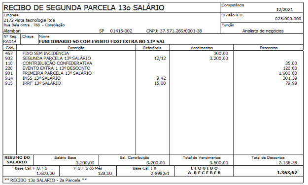 Este artigo tem como objetivo demonstrar os procedimentos a serem realizados quando existe evento extra sem tributação informado na 01ª Parcela de 13º salário.