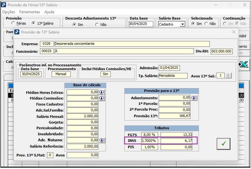 - INSS Reoneração = Valor da Base Reonerada aplicado % reoneração gradual conforme exercício.