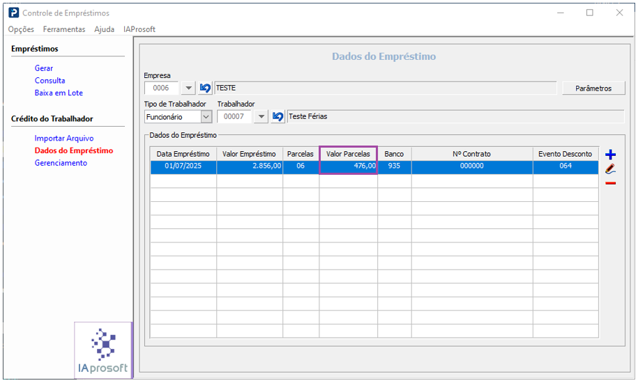Ocorre o desconto real da parcela do Crédito do Trabalhador, que é o valor que realmente está sendo abatido do salário do funcionário naquele mês. Esse valor será descontado automaticamente todo mês conforme o acordo feito.