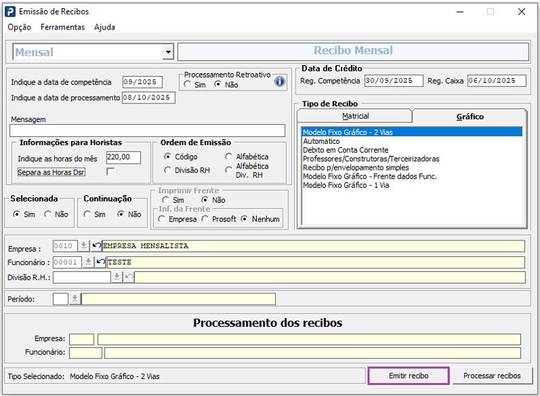 4- No rodapé do Recibo processado, é possível solicitar a impressão: