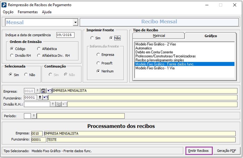 2- Também é possível realizar a reimpressão do Recibo de Pagamento que foi processado anteriormente: