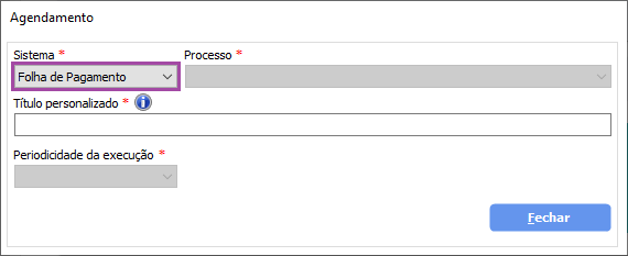 6 - Observe que ao selecionar a opção de Folha de Pagamento, novas opções serão apresentadas para a inclusão do agendamento: