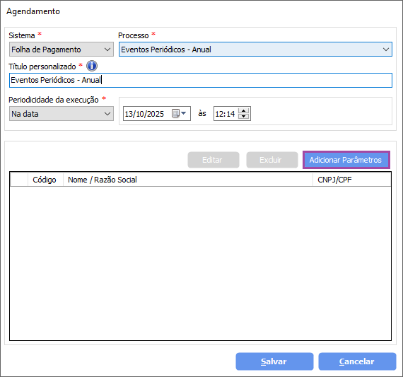 11 - Ao selecionar o botão, a tela seguinte será apresentada, permitindo ao usuário configurar as empresas e parâmetros necessários para o Envio dos Periódicos das empresas selecionadas.