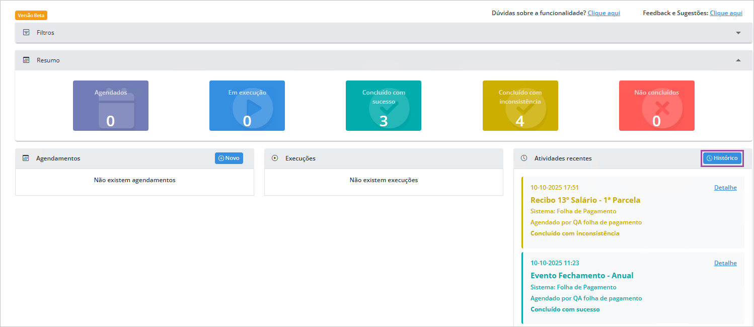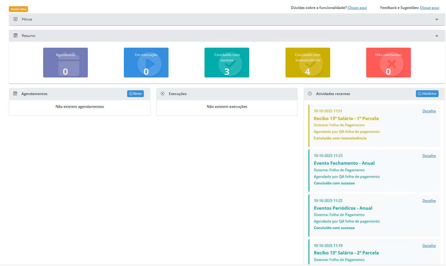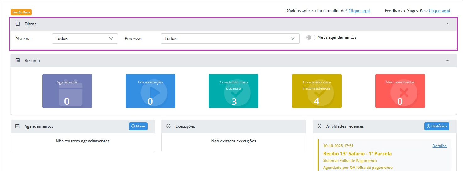 1 - O Dashboard permite aos usuários uma visão completa dos processos automáticos. Lembrando que este processo também é utilizado por outros sistemas como o Fiscal, sendo assim estes processos também serão apresentados.