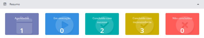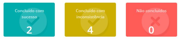 Concluídos com inconsistência - Em amarelo os conteúdos foram executados e finalizados, mas apresentaram algum tipo de inconsistência no processo.