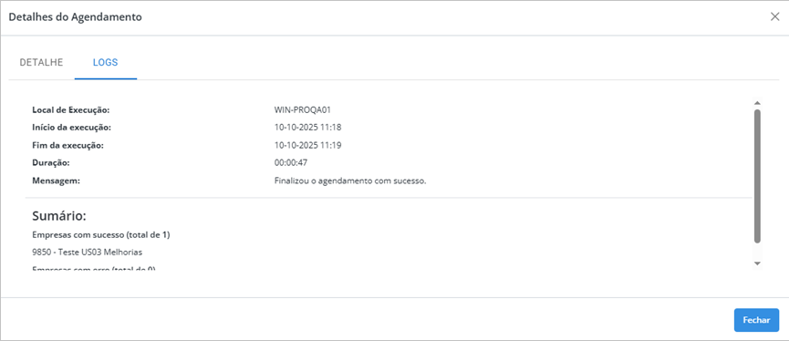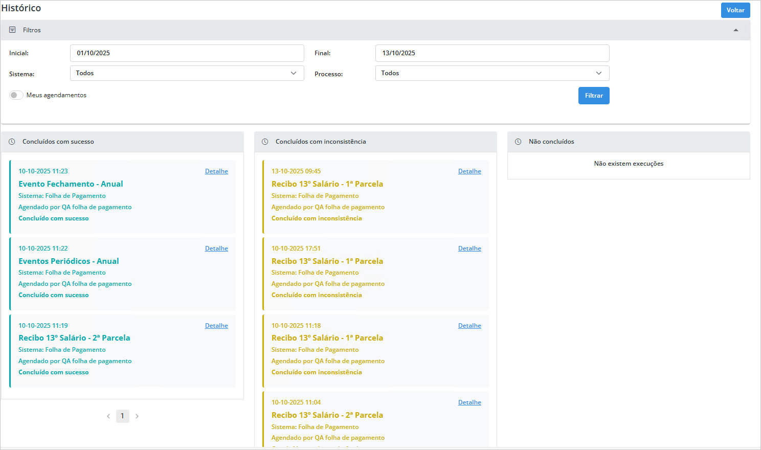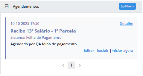 Observe que possui uma seta de listagem para movimentação entre os agendamentos, bem como as informações já citadas no processo Configurar Processos Automáticos.