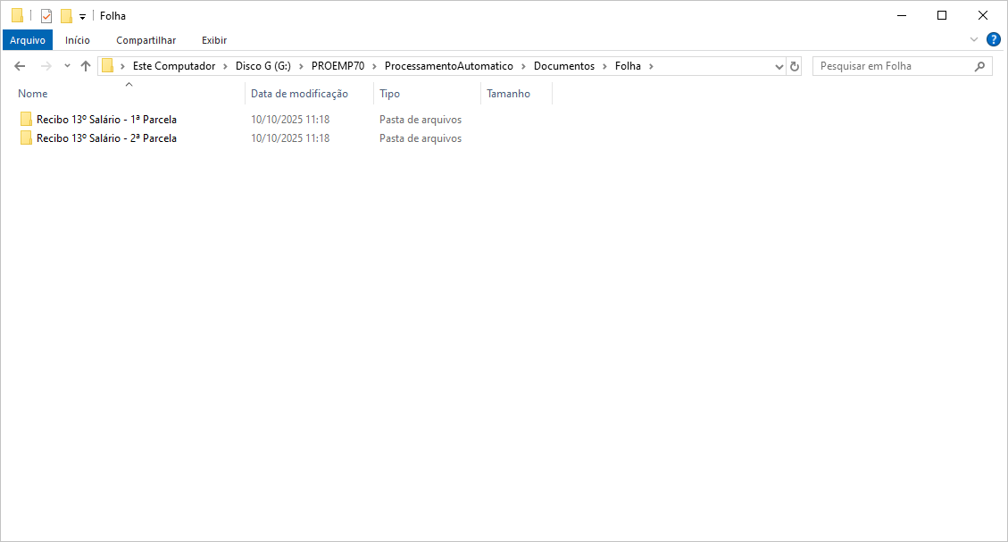 2- Neste caso no caminho indicado você encontrará todos os processos referente aos recibos de 13º Salário, conforme imagem a seguir: