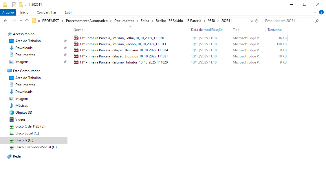 1- Para visualizar os relatórios e demonstrativos gerados pelo processo acesse a pasta de sua PROEMP, como por exemplo: G:\PROEMP70\ProcessamentoAutomatico\Documentos\Folha\