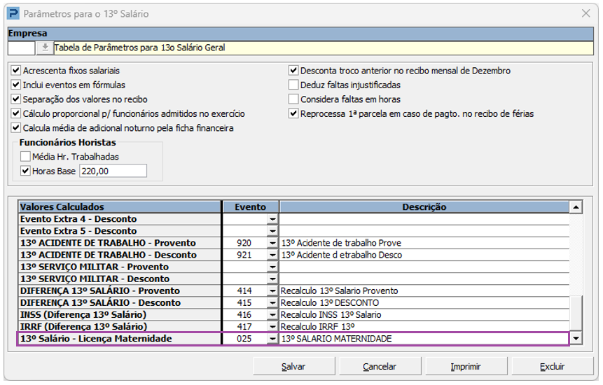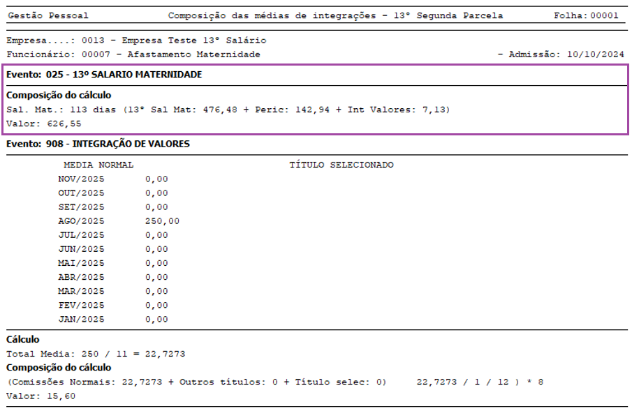 Cálculo do Evento de 13º Salário – Licença Maternidade