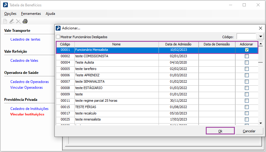 1- Acesse Social > Folha de Pagamento > Tabelas > Tabela de Benefícios
