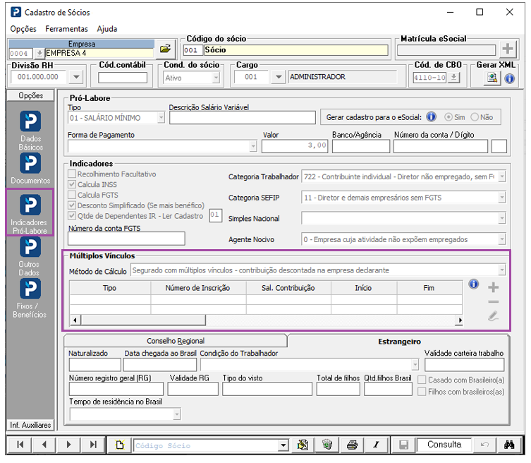1- Acesse Social> Controle de Sócios> Manutenção de Arquivos de Sócios> Cadastro de Sócios