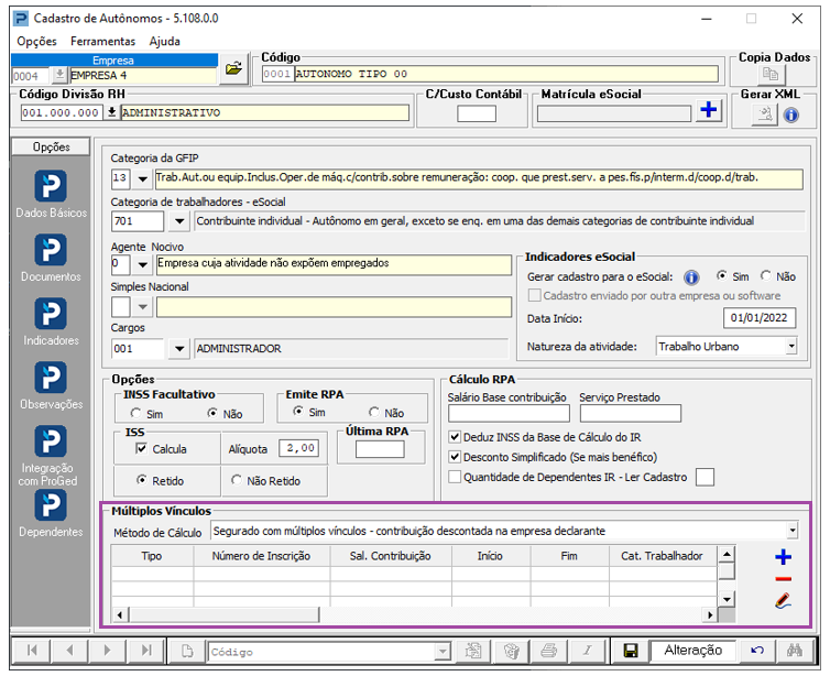 1- Acesse Social> Controle de Autônomos> Manutenção de Arquivos de Autônomos> Cadastro de Autônomo