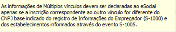 Este artigo possui as orientações quando ao enviar o evento S-1200 o mesmo retorna com status 10 e a mensagem: Já existe no evento um grupo com mesma chave de identificação. Localização: /eSocial/evtRemun/ideTrabalhador/infoMV/remunOutrEmpr2