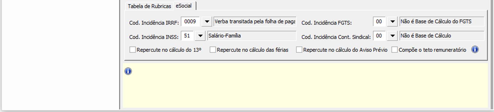 Informe Rendimentos: Este campo é utilizado para eventos que devem ser considerados no Informe de Rendimentos, ou seja, deve ser indicado em qual campo esse valor será impresso no Informe de Rendimentos. Indique o código por meio da seta de pesquisa de acordo com as opções disponíveis.