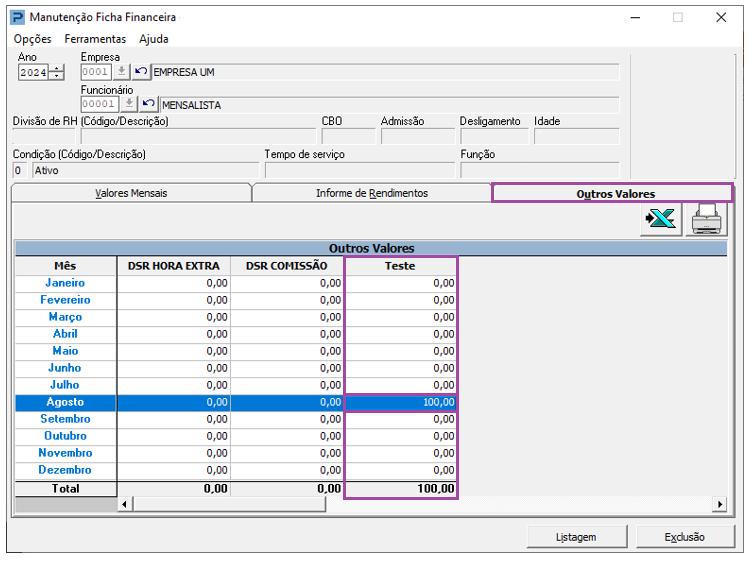 Os valores são acumulados corretamente na ficha financeira do funcionário, no título criado. Lembrando que para qualquer evento que o usuário queira acumular na ficha financeira, o procedimento é o mesmo.