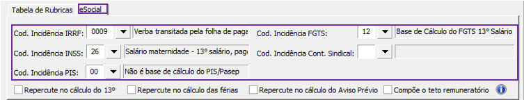Com a Natureza da Rubrica 9931, Incidência de IRRF 09, Incidência de INSS 26, e Incidência de FGTS 12