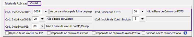 Com a Natureza da Rubrica 9931, Incidência de IRRF 09, Incidência de INSS 00, e Incidência de FGTS 00