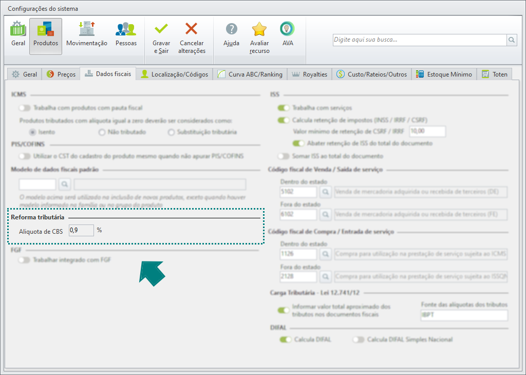 Para localizar no sistema onde essa alíquota se encontra, siga os passos: