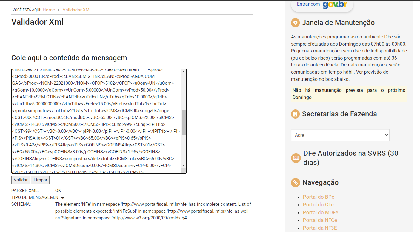 Valide o XML: CLIQUE AQUI para acessar o validador oficial da Sefaz-RS.