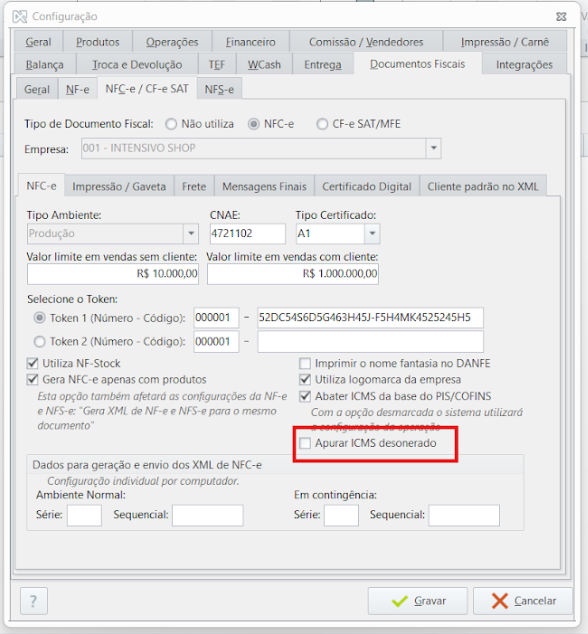 Esta configuração está localizada na seção de dados para geração e envio do XML de NFC-e (Configuração individual por computador).
