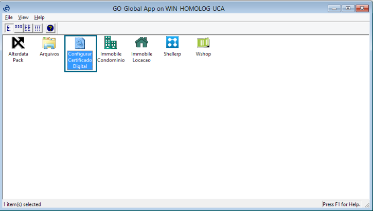 No Go-Global, clique na aplicação "Configurar Certificado Digital".