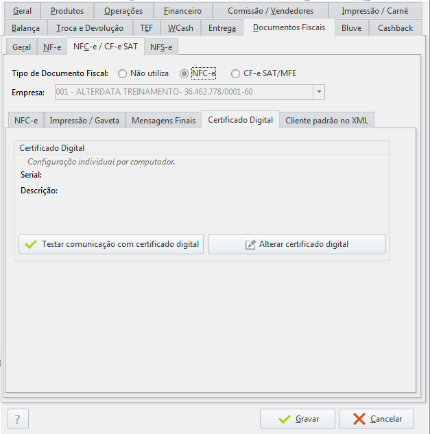 - Alterar Certificado Digital → caso seu certificado digital seja trocado por algum motivo, você precisará clicar neste botão para substituí-lo no sistema, pelo novo certificado.