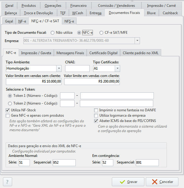 - Ambiente Normal → informe a série e o número sequencial para geração da NFC-e no ambiente normal de emissão;