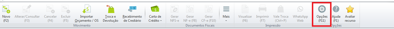 2- Clique em Opções (F11):