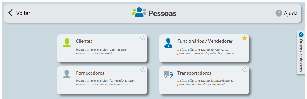 1- Acesse o cadastro clicando em Pessoas / Funcionários/Vendedores;
