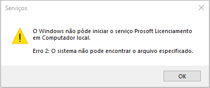 Página: A294 - Erro 2 a iniciar o serviço do Prosoft licenciamento