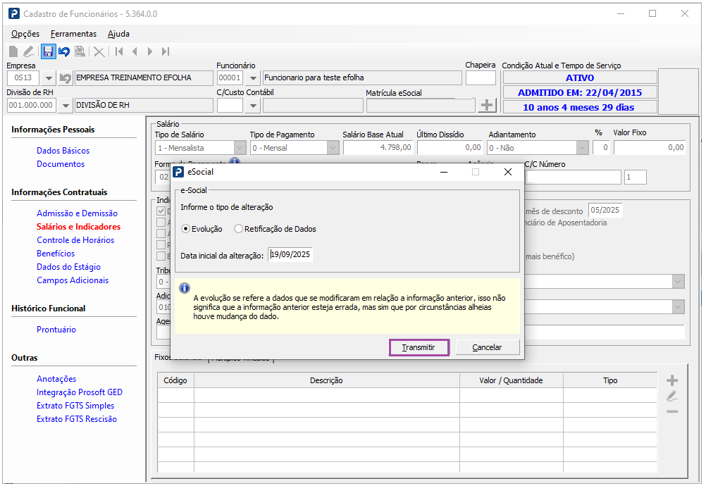 Página: A1166- Mensagem para transmissão do Evento S2206 não é apresentada no cadastro de funcionários, mesmo após procedimentos do artigo A1134