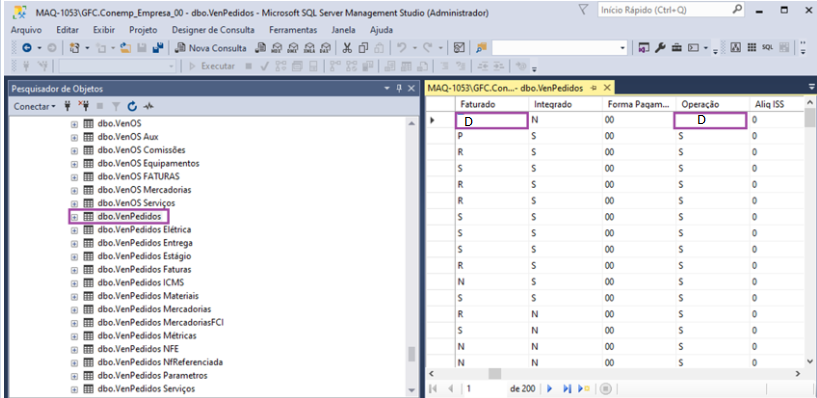Página: A1869 - Alterar status da NF via banco para Devolvida